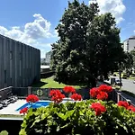 Το διαμέρισμα Vila Moste 2 - Free Parking & Pool, Ev Station Λιουμπλιάνα διαθέτει ιδιωτική πισίνα και βεράντα με θέα στον κήπο.